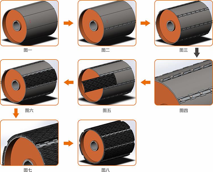 3.安裝維修方便:安裝時,無需外協(xié)覆膠加工,縮短加工周期,節(jié)省覆膠綜合成本;維修覆膠時,滾筒無需拆卸,可現(xiàn)場快速更換, 減少停機時間,提高生產(chǎn)效率,降低維護成本。
